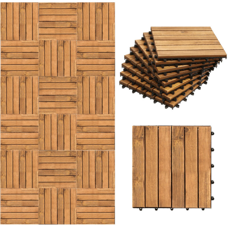 Randaco Lot de 11 dalles en bois dalles de terrasse 6 lattes 1 m², 30 x 30 cm, Dalles clipsables en bois d'acacia