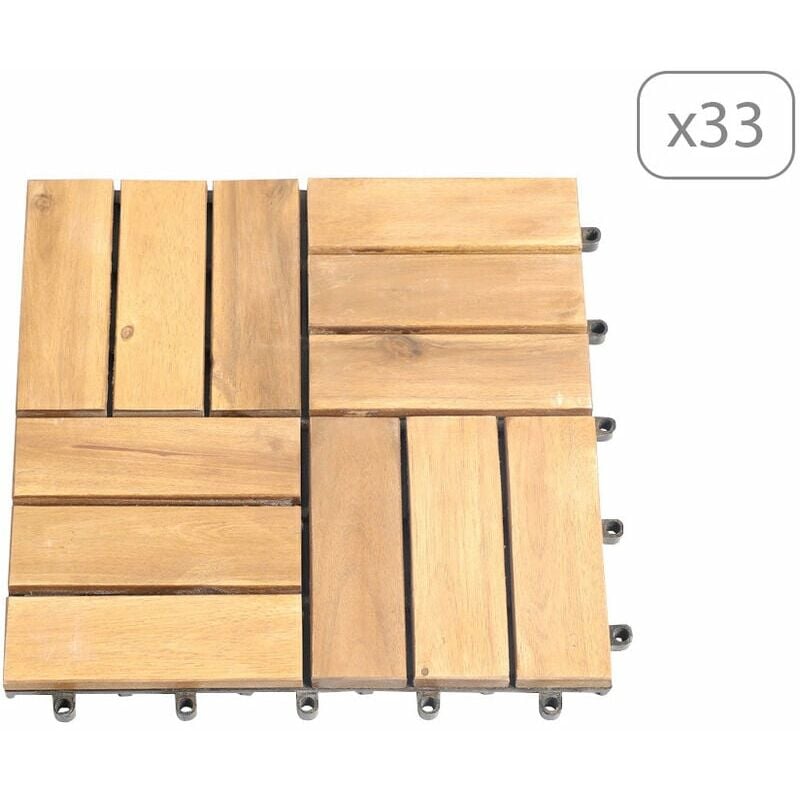 Randaco Lot de 33 dalles en bois dalles de terrasse 6 lattes 3 m², 30 x 30 cm, Dalles clipsables en bois d'acacia