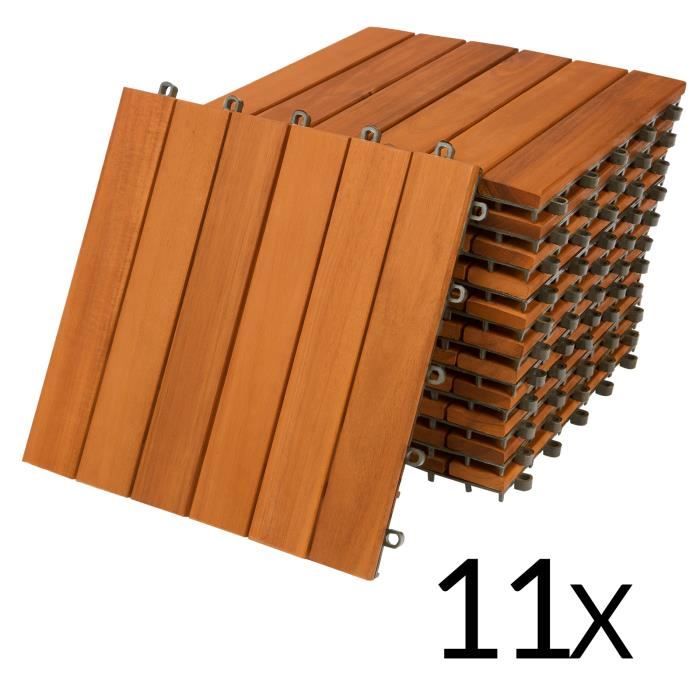 Dalle de terrasse en bois dacacia clipsable 30x30 cm - DEUBA - 11 dalles - Résistant aux intempéries