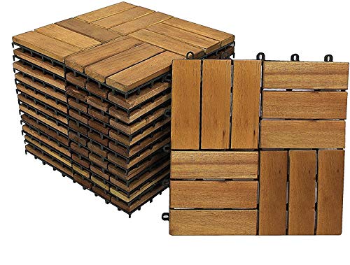 Lot économique de 33 Dalles en Bois 02 pour 3 m² - Dalles de terrasse en Bois d'acacia avec 12 Lattes pour Jardin, terrasse, Balcon, revêtement de Sol avec sous-Structure de Drainage