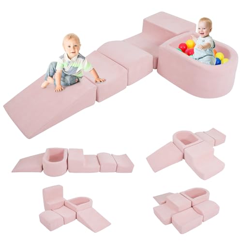 FANTASK Lot de 5 Blocs de Construction en Mousse XXL géants avec Piscine à balles, Grands Blocs de Construction pour se défouler et escalader, Blocs de Jeu Souples pour la Maison, la Chambre d'enfant