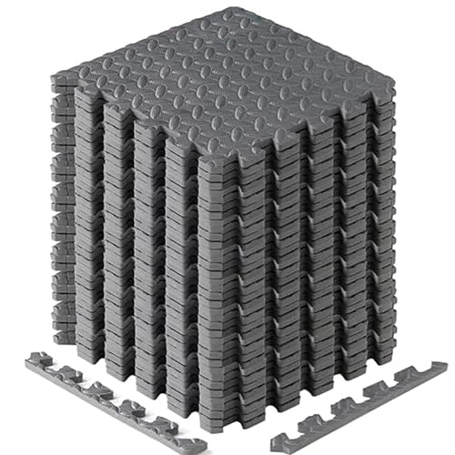 Yes4All Tapis Emboîtables en EVA, Dalles de Sol en Mousse, Revêtement de Sol en Mousse avec Bordure pour Meubles, Espace de Vie, Salon, Garage - Gray, 1.02 m2