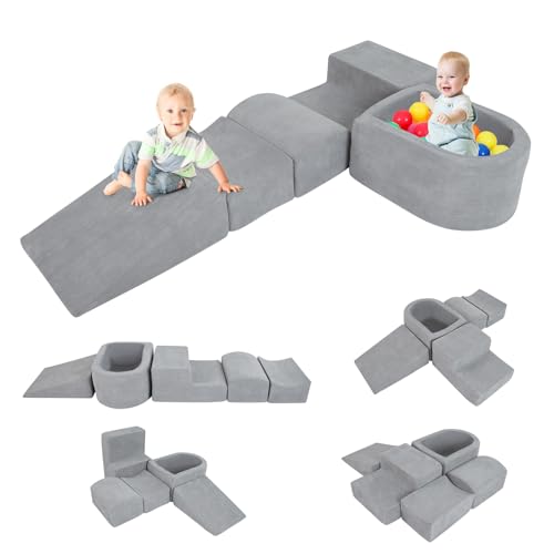 FANTASK Lot de 5 Blocs de Construction géants pour Enfants - en Mousse avec Piscine à balles - pour se défouler et escalader - en Mousse - pour Salle de Jeux, Chambre d'enfant - Gris
