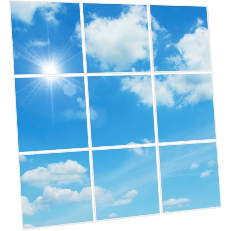 Pack de 9 Dalles LED Imprimées 60x60 cm - Motif Ciel Lumineux - Lumière Blanc Neutre 4000K - Panneaux Lumineux Plafond Bureau Salon Cuisine - Faciles