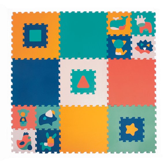 LUDI - Dalles épaisses en Mousse - Tapis de Sol Géant pour bébé - Puzzle aux Motifs géométriques et Animaux - Dès 10 Mois