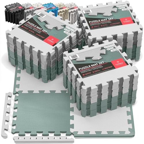 Fitem Dalles en Mousse EVA Environnemental – Tapis de Sport Puzzle - Protection Sol - Garage - Tatami - Piscine - Fitness - Musculation – Gym – 63 x 63 x 1 cm ou 44 x 44 x 1 cm (Gris63cm-12pc)