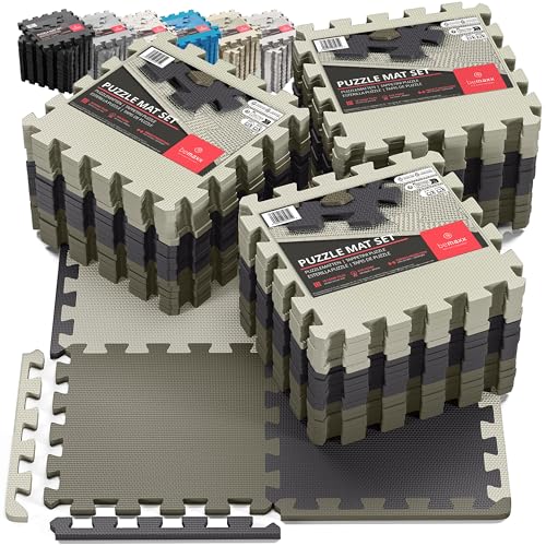 Tapis de Fitness Protection de Sol Salle de Sport - Dalles en Mousse sans BPA + Bordures | Matelas Puzzle Tatami EVA Caoutchouc pour Matériel Gym Banc de Musculation Course Garage Piscine Isolation