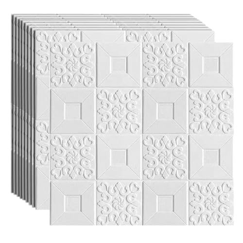 Dalle de Plafond Dalles de plafond autocollantes 3D, revêtement mural imperméable pour cuisine et sous-sol– Revêtement décoratif lisse à coller, panneaux de lambris légers auto-adhésifs(White,50cmx50m