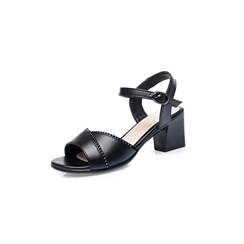 Sandales pour Femmes Femmes Sandales Boucles en métal Chaussures Femmes Talons Med coloride Couleur décontractée Les Chaussures de la Dame TSALSCHWARZ, 4.5 UK