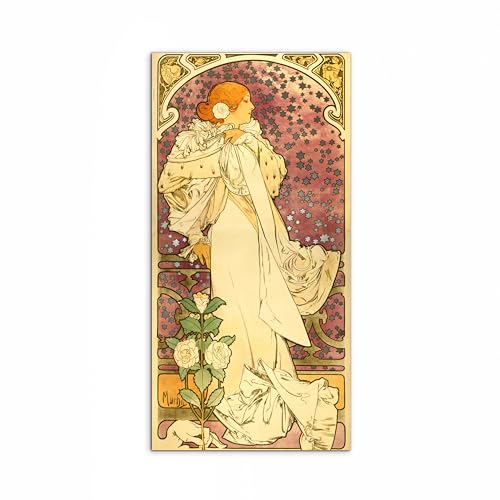 Artopweb EarthArt Plain 100 × 50 cm Tableau Fine-Art Mat Anti-Réflexe Léger Prêt à Suspendre Décoration Maison Art Design Italien Eco-Friendly - La Dame Aux Camelias de Mucha Alphonse