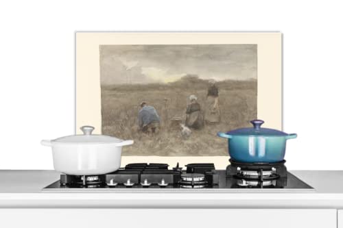 Credence Récolteuses de pommes de terre - Peinture d'Anton Mauve Fond de hotte 80x55 cm Credence aluminium Plaque inox de cuisine