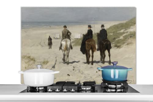 Credence Promenade matinale le long de la plage - Peinture d'Anton Mauve Fond de hotte 80x55 cm Credence aluminium Plaque inox de cuisine