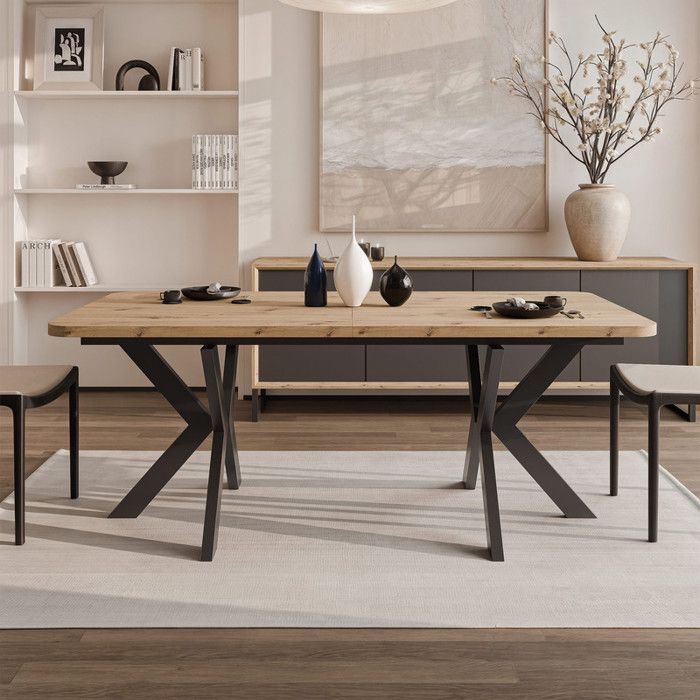 Table à Manger Extensible DANTON - 8-10 personnes - Style Industriel - 200x100x76 cm - Noir/chêne Lefkas