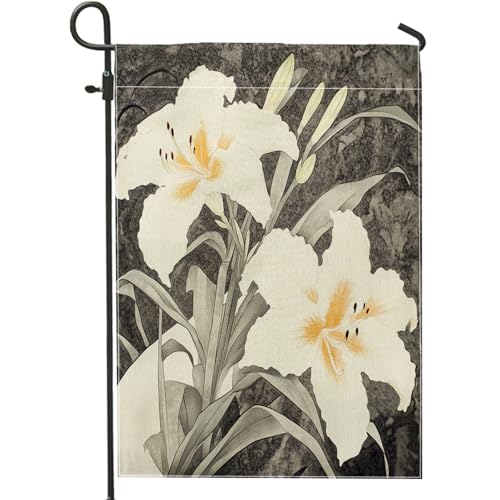 Drapeaux japonais vintage hémérocalles de jardin 30,5 x 45,7 cm double face pour extérieur, drapeau chinois en toile de jute standard, drapeau de pelouse à fleurs cool pour arrière-cour, petite maison