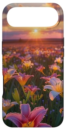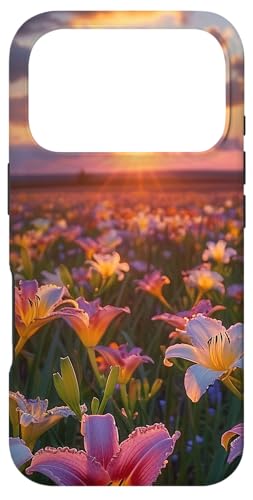 Beau Motif Coucher de Soleil sur Le Champ de Fleurs d'héméro Coque pour iPhone 17 Pro Max