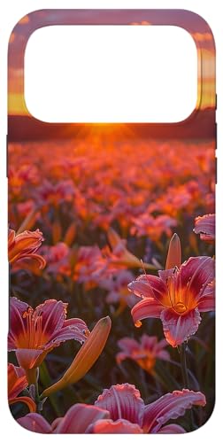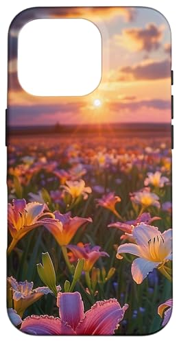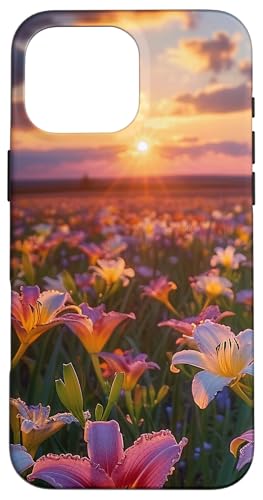 Beau Motif Coucher de Soleil sur Le Champ de Fleurs d'héméro Coque pour iPhone 16 Pro Max