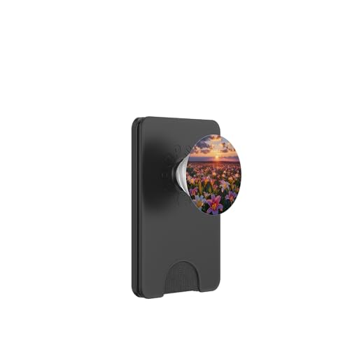 Beau Motif Coucher de Soleil sur Le Champ de Fleurs d'héméro PopSockets PopWallet pour MagSafe