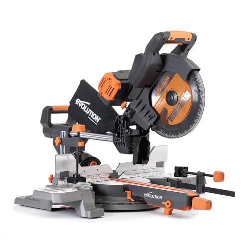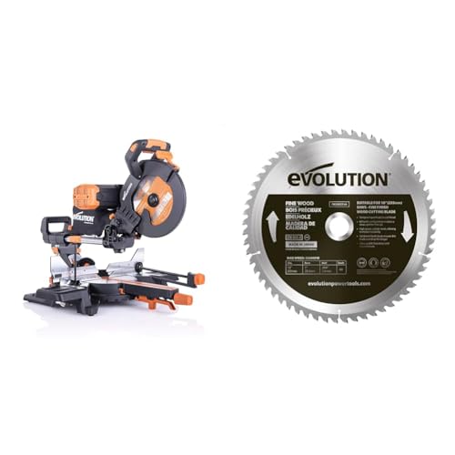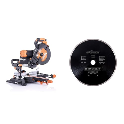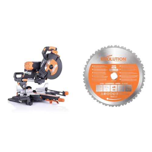 Evolution Power Tools R255SMS-DB+ Scie à onglets coulissante multi-matériaux à double biseau, 255 mm & Power Tools - DM255 Lame Diamant, 255 mm