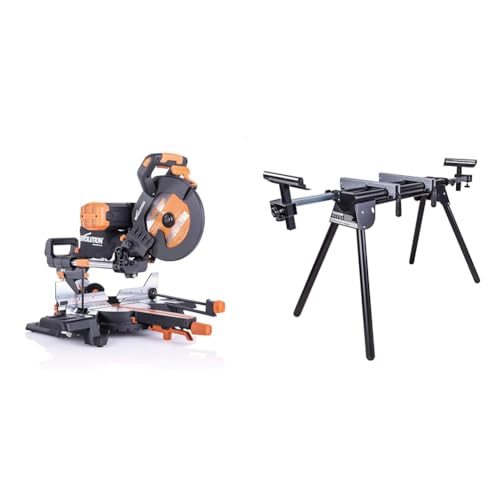 Evolution Power Tools R255SMS-DB+ Scie à onglets coulissante multi-matériaux à double biseau, 255 mm & Power Tools - Support pour Scie à Onglet avec Extensions