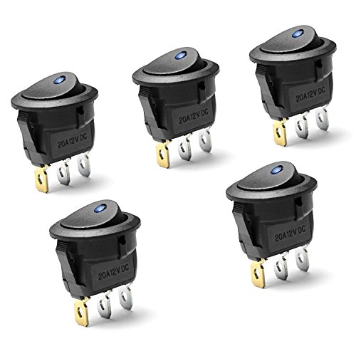 5 Pcs DC 20A 12V Rond Interrupteur à Bascule pour Voiture Bateau avec LED Bleu