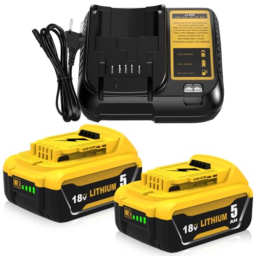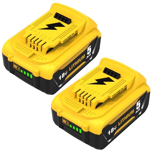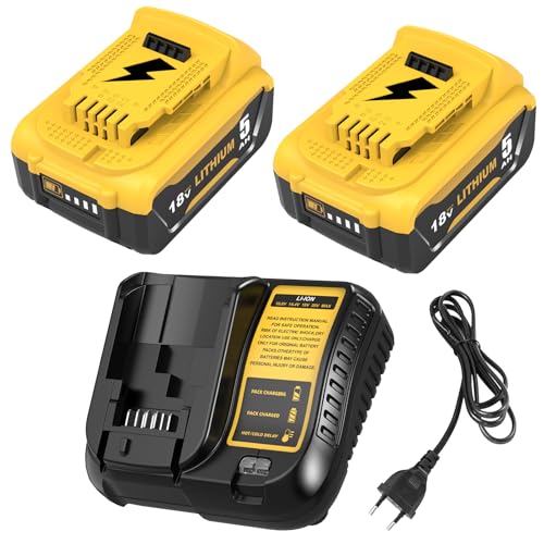 5Ah Batterie pour Dewalt Batterie 18V: 2-pièces Li-ION Batterie Kompatibel XR DCB200 DCB180 DCB181 DCB182 DCB184 DCB201