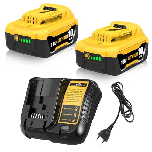 Moticett 2 pièces 10,0 Ah de Rechange pour Dewalt Batterie 18 V DCB184 DCB180 DCB181 DCB182 DCB200 DCB201 DCB204 avec Affichage LED + 10,8~20 V 3 A DCB107 pour Dewalt Chargeur