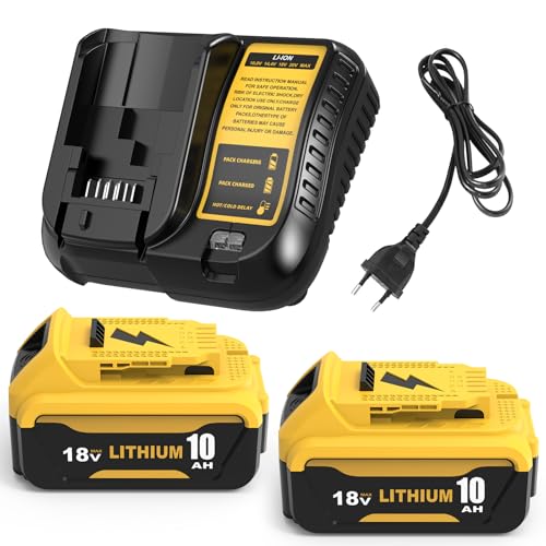 2 Pièces 10.0Ah/10000mAh Remplacement pour Dewalt Batterie 18V + DCB107 10.8-20V Chargeur DCB200 DCB180 DCB181 DCB182 DCB184 DCB201 DCB204 DCB102