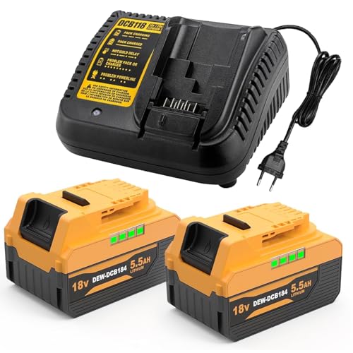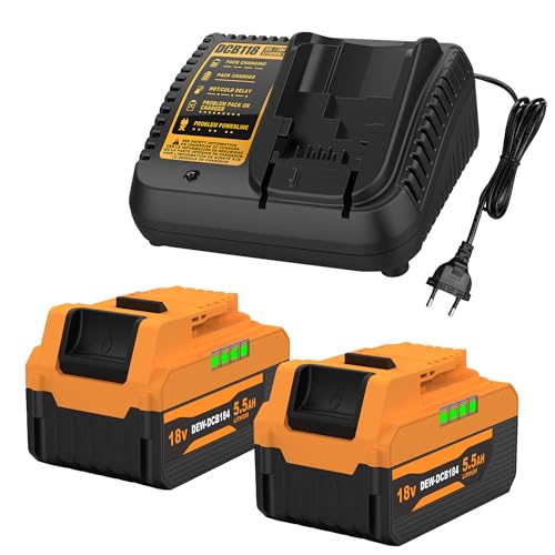 Energup 2 Pièces 18V 5500mAh Batterie avec Chargeur pour Dewalt Batterie 18V DCB184 DCB180 DCB181 DCB182 DCB183 DCB200 DCB201 DCB206