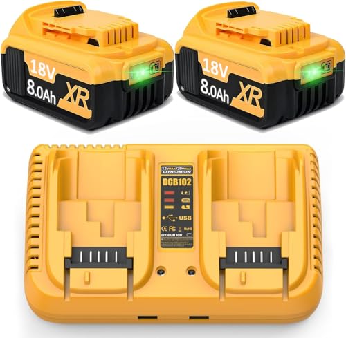 2X 18V 8.0Ah Li-ION dewalt Haute capacité en Remplacement de la Batterie pour Dewalt 18V DCB200 DCB184 DCB182 DCB101 DCB107 DCB112 DCB105 DCB115 DCB203
