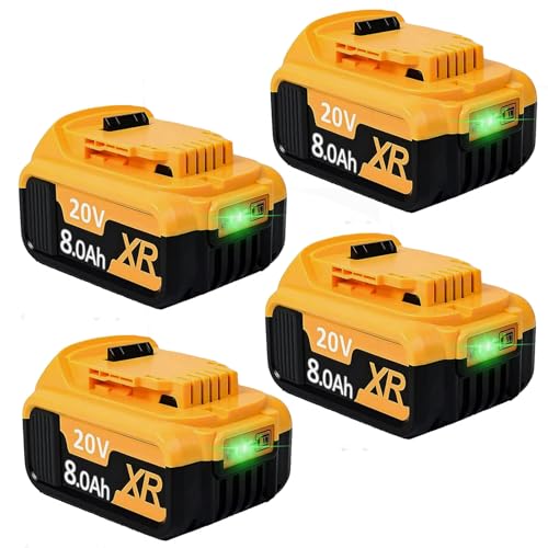 4X 18V 8.0Ah Li-ION DCB200 Haute capacité en Remplacement de la Batterie pour Dewalt 18V DCB200 DCB184 DCB182 DCB101 DCB107 DCB112 DCB105 DCB115 DCB203