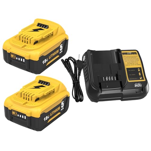 2Pcs Remplacement pour DeWalt Batterie 18V 5.0Ah+pour Dewalt Chargeur 18V 3A DCB182 DCB180 DCB184 DCB200 DCB182 DCB181 DCB201 Outil Batterie Goodexo