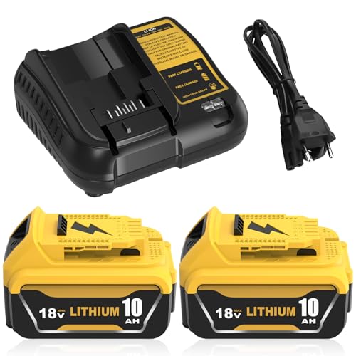 2pcs 10.0Ah/10000mAh Replacement pour Dewalt 18V Batterie +3A DCB102H Chargeur à Double Port pour Dewalt Batterie DBC200 DCB180 DCB181 DCB182 DCB184 DCB185 DCB201 DCB204 (2*10.0Ah Batterie+Chargeur)