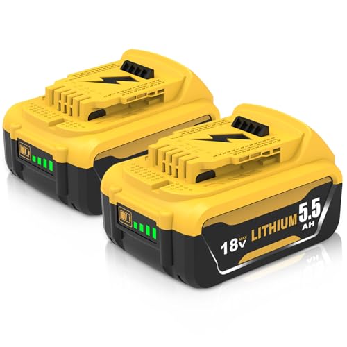 2X 5500mAh Remplacement pour Dewalt Batterie 18V DCB184 DCB180 DCB181 DCB182 DCB200 DCB201 DCB204 DCB127 DCB112 DCB115 avec indicateur LED(Jaune)