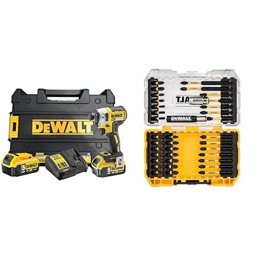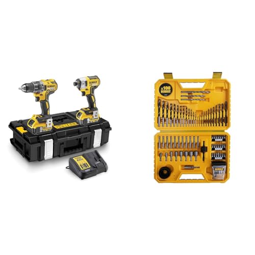 DEWALT - Kit 2 Outils avec Perceuse-Visseuse Percussion Compact DCD796 et Visseuse à Chocs DCF887, XR 18V, 5Ah & Coffret de 100 Pièces de Perçage et Vissage Haute Performance - DT71563-QZ