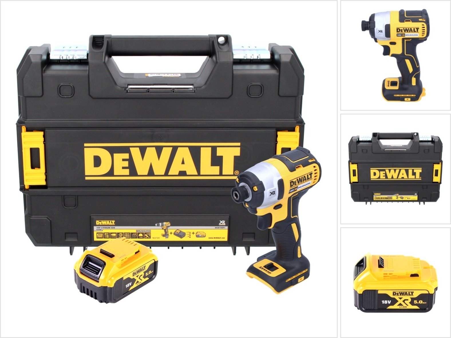 DeWalt DCF 887 Brushless 18 V Clé à chocs sans fil avec mandrin hexagonal 1/4" + 1 x Batterie 5 Ah + Coffret de transport TSTAK - sans Chargeur