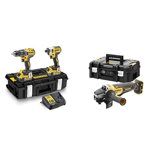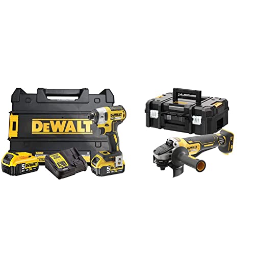 DEWALT - Kit 2 Outils avec Perceuse-Visseuse Percussion Compact DCD796 et Visseuse à Chocs DCF887, XR 18V, 5Ah & Meuleuse Brushless XR 18V 5Ah Li-Ion - Lame Ø125mm - Vitesse à Vide 9000tr/min - 1000W