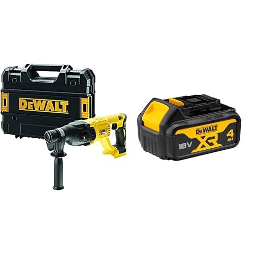 DEWALT - Perforateur-Burineur SDS-PLUS Brushless 2.6J 18V - DCH133NT-XJ - Sans Fil avec Coffret TSTAK et Débrayage de Sécurité - Diamètre & Batterie XR 18V 4 Ah Li-Ion - DCB182-XJ - Compatible