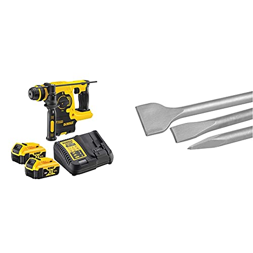 DEWALT - Perforateur SDS-PLUS Brushless 2.1J 18V 4Ah Li-Ion - DCH253M2-QW & Jeu de 3 Burins SDS-PLUS - DT60330-QZ - 2 Burins Plats et 1 Burins Pointu - 25 cm - Burins SDS-PLUS pour Perforateurs