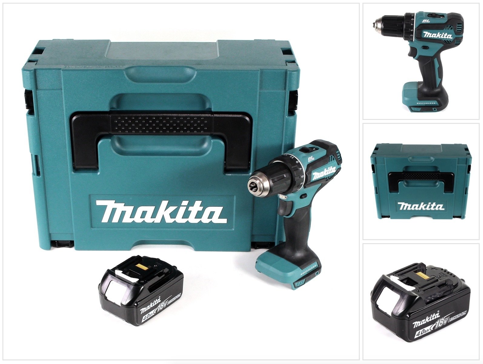 Makita DDF 485 M1J 18 V Li-Ion Perceuse visseuse sans fil Brushless 13 mm + Coffret MakPac + 1 x Batterie 4,0 Ah - sans Chargeur