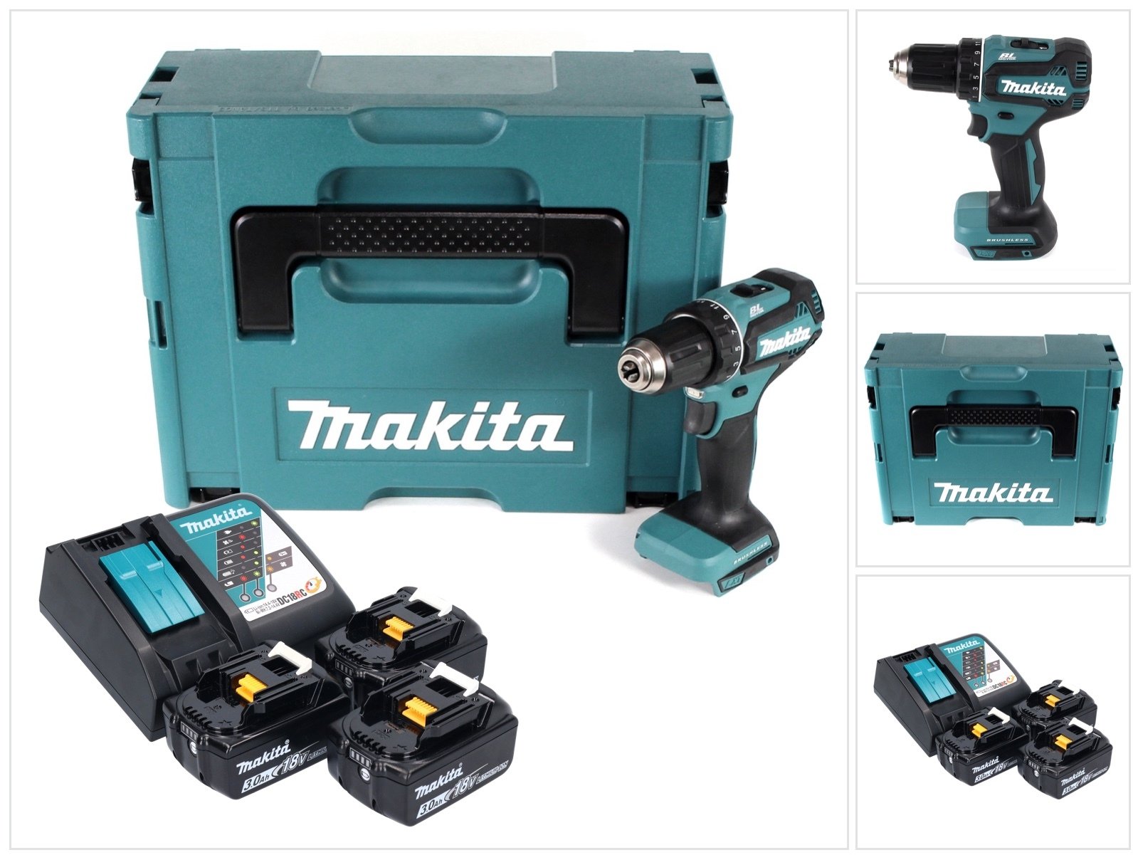 Makita DDF 485 RF3J Perceuse-visseuse sans fil 50Nm 18V Brushless + 3x Batteries 3,0Ah + Chargeur + Coffret Makpac