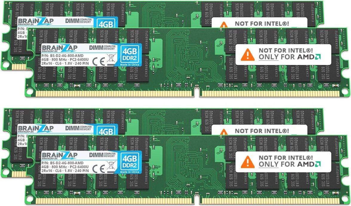 BRAINZAP 16GB DDR2 RAM DIMM PC2-6400U 2Rx16 800 MHz 1.8V CL6 Mémoire PC AMD (4x 4GB)