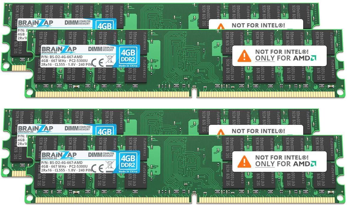 BRAINZAP 16GB DDR2 RAM DIMM PC2-5300U 2Rx16 667 MHz 1.8V CL5 Mémoire PC AMD (4x 4GB)