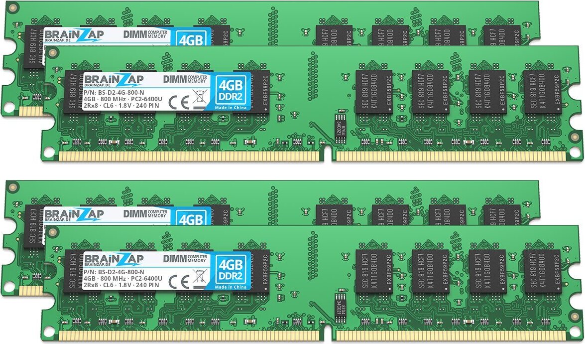 BRAINZAP 16GB DDR2 RAM DIMM PC2-6400U 2Rx8 800 MHz 1.8V CL6 Ordinateur PC Mémoire vive (4x 4GB)