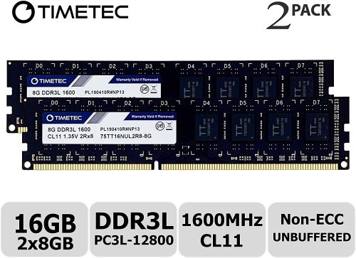 Timetec Hynix IC 16GB Kit (2x8GB) DDR3L 1600MHz PC3-12800 Unbuffered Non-ECC 1.35V CL11 2Rx8 Dual Rank 240 Pin UDIMM Bureau Mémoire RAM Module Upgrade (16GB Kit (2x8GB))