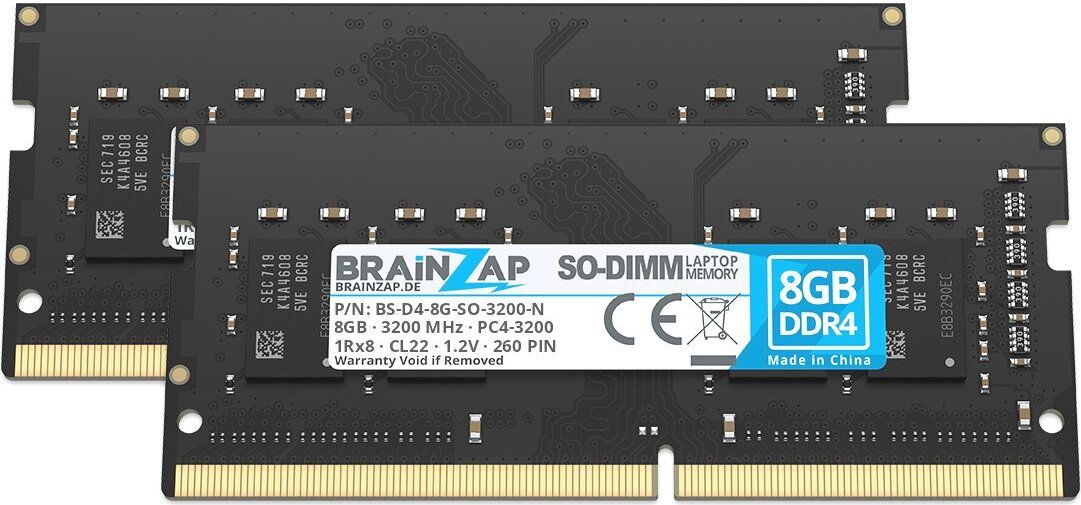 BRAINZAP 16GB DDR4 RAM SO-DIMM PC4-3200 1Rx8 3200 MHz 1.2V CL22 Mémoire pour ordinateur portable (2x 8GB)