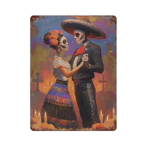 sinyumoney Mexican Day of The Dead Dance Plaque Décorative Vintage En Métal, Accessoire Idéal Pour La Maison, La Ferme, Les Cafés, Le Bureau Ou Un Magasin11.8 x7.9