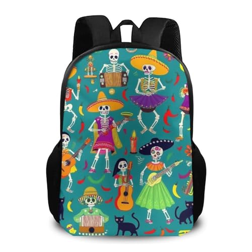 Sac À Dos Day of The Dead Skeleton Dance Daypack Homme Et Femme Backpack Léger Cartable pour Randonnée Camping Cadeau Rentrée