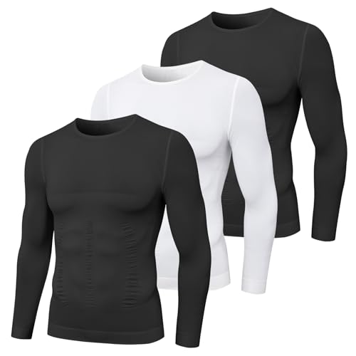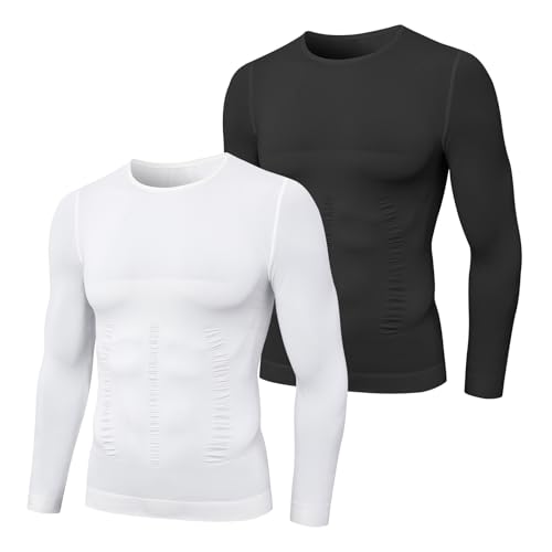 MEETYOO Débardeur Compression Homme, Manches Longues pour Hommes Maillot de Corps Ventre Plat Minceur Gilet Invisible Amincissant sans Manches Body Shaper Tee Shirt