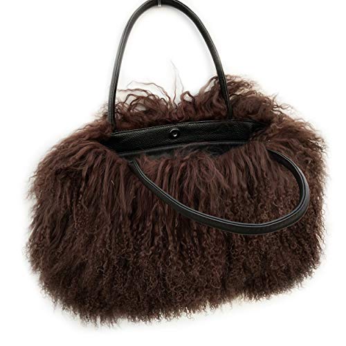 FINILUO Sac à main de luxe en fourrure de laine de Mongolie véritable - Pour femme, chocolat,