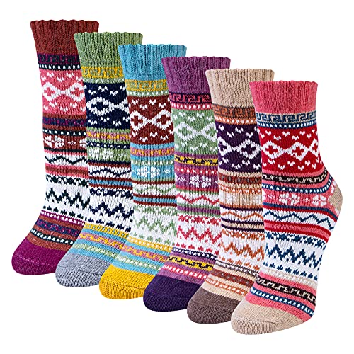 Justay 6paires Chaussettes d'Hiver pour Homme Femme Chaussettes de Travail en Laine Coton Chaude Épaisses Doux Unisexe,Taille unique,Multicolore